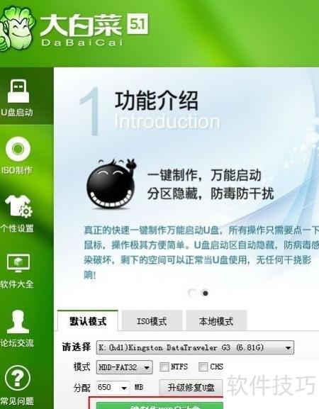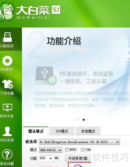 1、 市面上有许多U盘启动盘制作工具,均可在网上下载。以大白菜为例,可前往其官网下载该软件,安装后即可进行制作。
