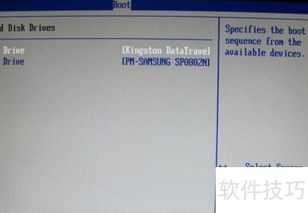 14、 将U盘设为硬盘驱动器中的首选启动设备后,启动设备优先级列表中才会出现该U盘。随后,需在第一启动设备选项中选择该U盘,使其成为系统启动时优先读取的设备,从而确保计算机能够通过U盘正常引导并进入相应操作环境,完成系统安装或维护等操作。