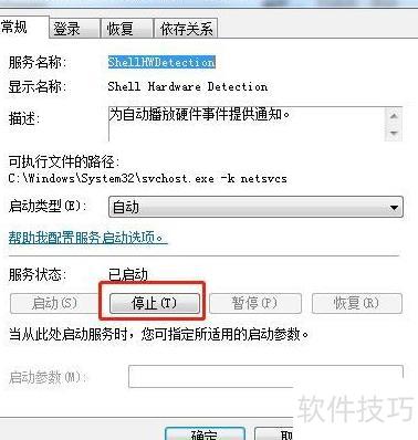 在Win7系统中,打开服务管理器,找到Shell Hardware Detection,右键选择停止并禁用该服务即可。