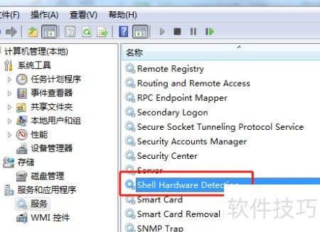 5、 在服务列表中找到Shell硬件检测项,双击打开即可。