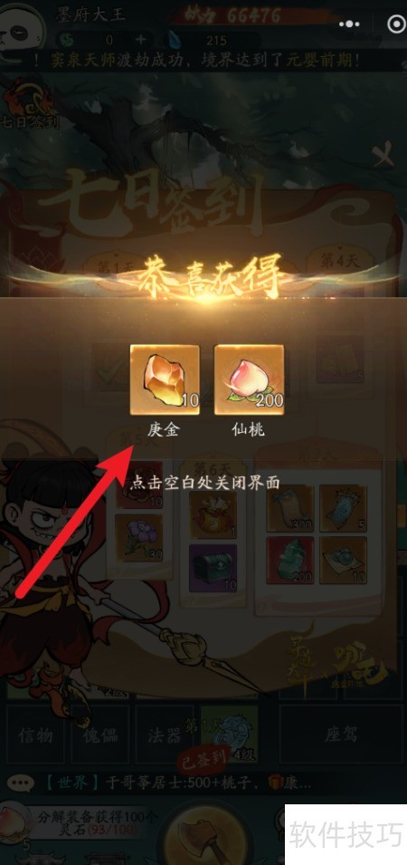 1、 进入寻道大千,点击底部七日签到图标即可。