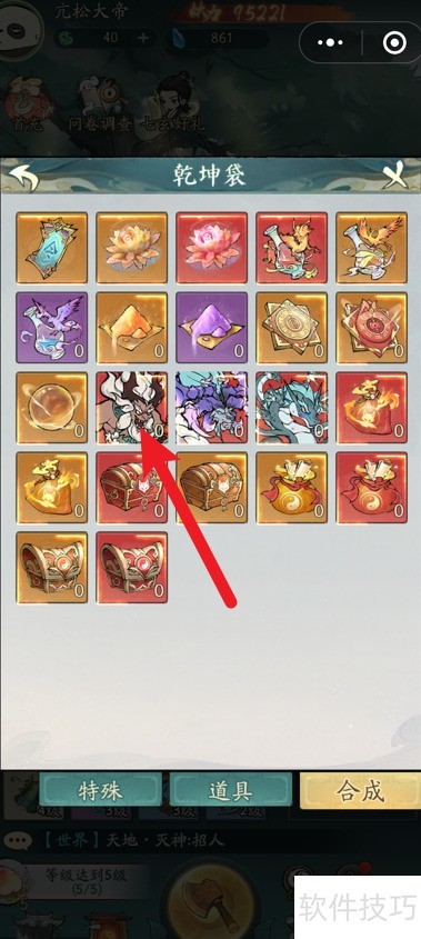 2、 进入乾坤袋,点击蚩尤图标即可。