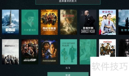 3、 选取三部喜爱的影片,便于精准推荐,点击即可完成设置。