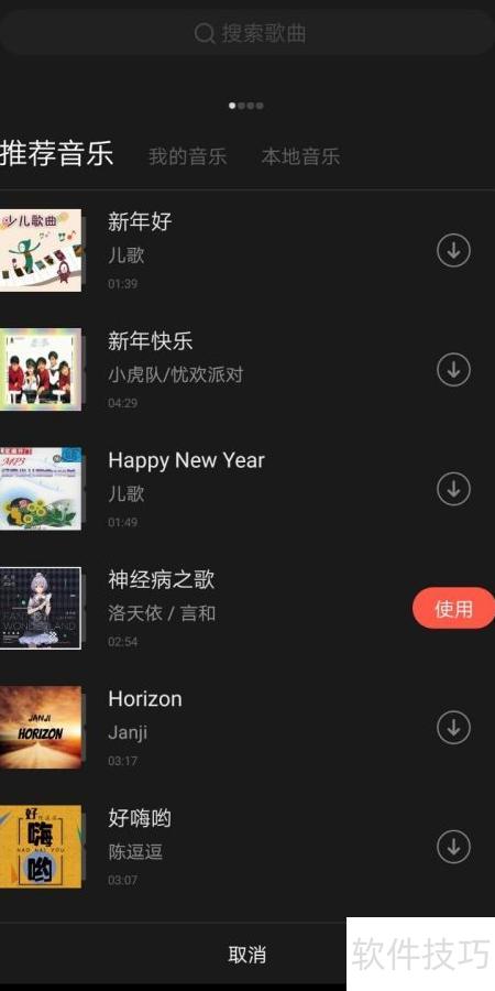 3、 点击音乐选项,挑选你喜欢的曲目播放。