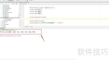 6、 运行程序后,两个Vector集合的并集结果即可显示。