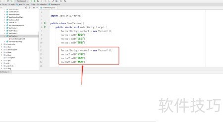 3、 声明第二个Vector对象,并向其中添加三个元素。