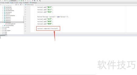 5、 调用vector1的addAll方法将vector2的所有元素添加进来,此时vector1即为两集合的并集,最后输出vector1的内容。