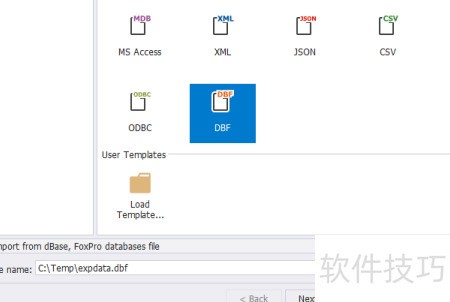 6、 选择dbf格式,设定导入文件后点击下一步即可。