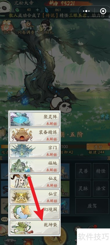1、 进入寻道大千,于洞府界面点击乾坤袋即可。