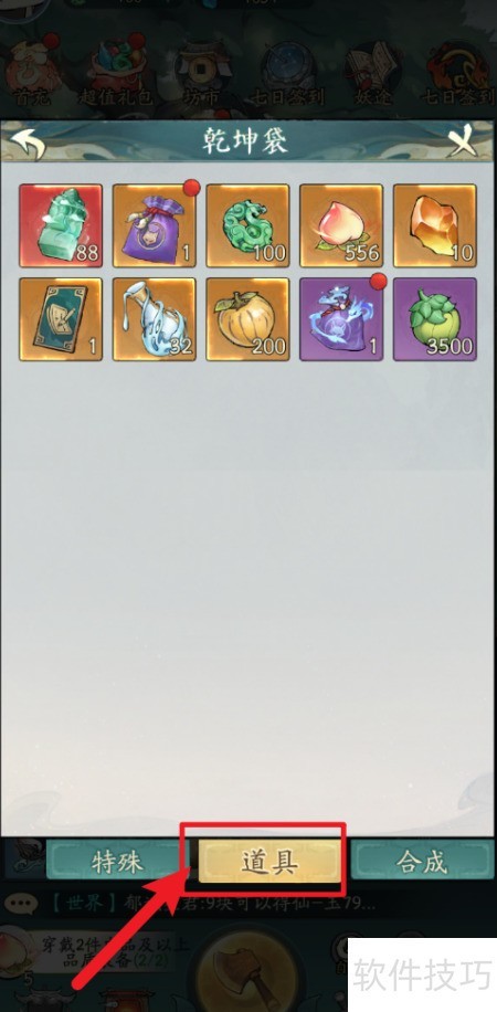 3、 进入乾坤袋页面,点击底部图标即可完成操作。