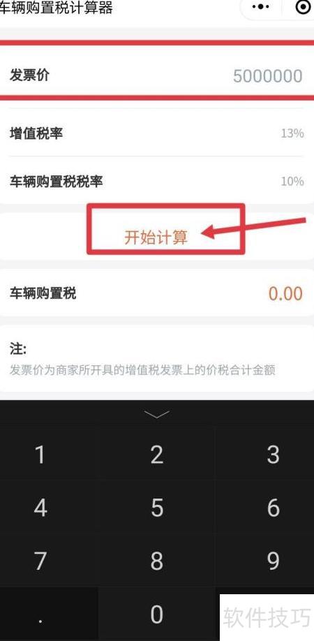 3、 进入页面后,在发票价格栏输入进口车价,点击开始计算按钮,操作所示。
