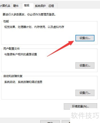 3、 切换至高级选项卡,点击性能区域的设置按钮继续操作。