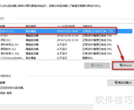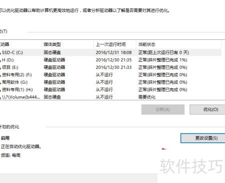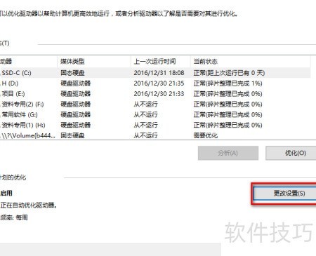 7、 可定期设置磁盘自动优化,进入更改设置并选择相应选项,确认即可完成配置。
