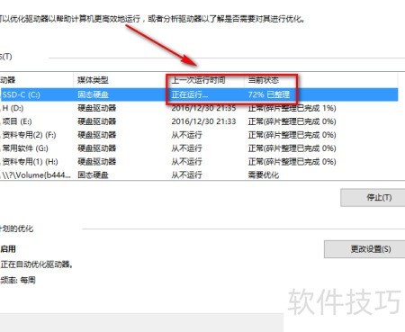 5、 点击优化后,系统将自动进行磁盘碎片整理。