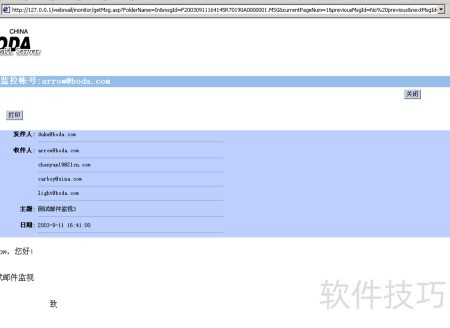 17、 无论邮件发送至Foxmail Server系统内外的邮箱,还是从这些邮箱发出,均可被监控;无论是通过Webmail网页方式,还是使用客户端软件进行邮件收发,所有操作均在监视范围内,确保对邮件通信全过程的全面监管。