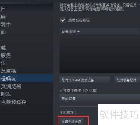 8、 在设置界面的远程畅玩栏目下,进入主机选项,点击高级主机选项按钮进行配置。
