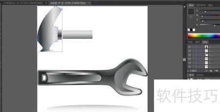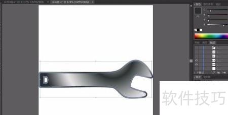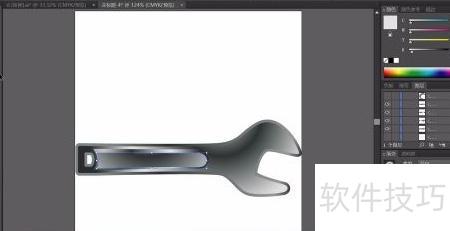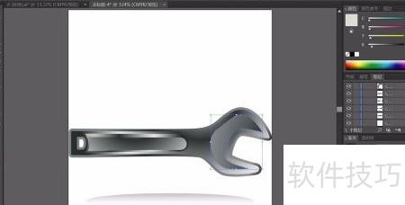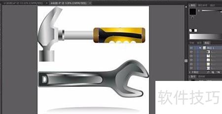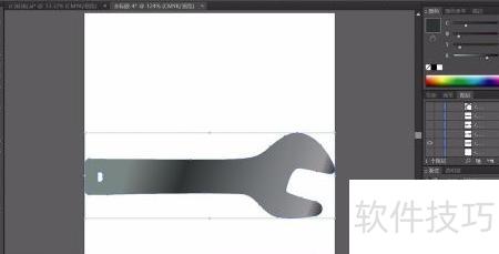 1、 用钢笔勾勒出下方修理工具的轮廓,选用灰黑色线性渐变填充路径,渐变角度约为负17度,呈现自然过渡效果。