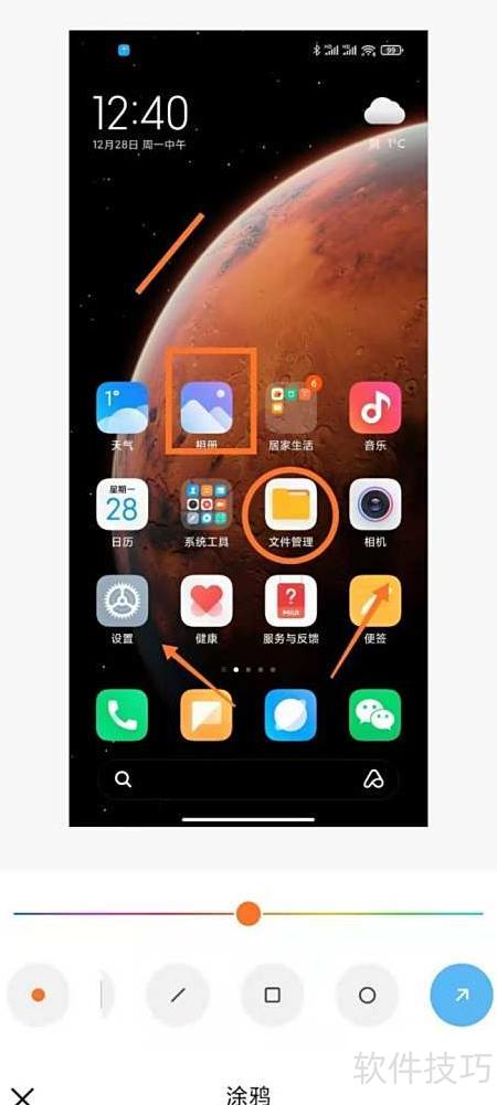 4、 选择涂鸦功能,自定义颜色并添加箭头标注,完成后记得及时保存。
