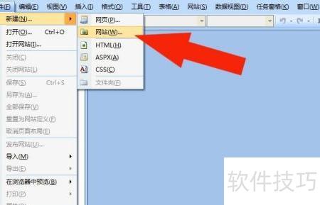 2、 用鼠标左键点击菜单中的新建,然后选择网站选项,操作所示。