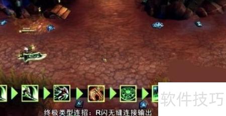 5、 瑞文连招顺序:开启大招后接Q、Q、E,使用提亚马特和W,随后二段R接Q并闪现,注意二段R与Q几乎同时释放,第三段Q可配合闪现砸向地面。