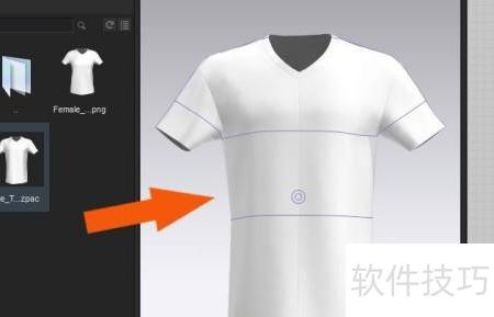 3、 选择短袖衣物模型,在文档中进行绘制,具体所示。