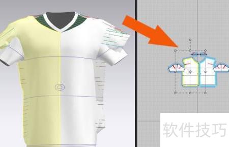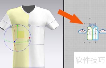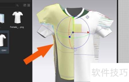 6、 在3D窗口中选中短袖模型的衣领部分,可调整其位置,具体操作所示。
