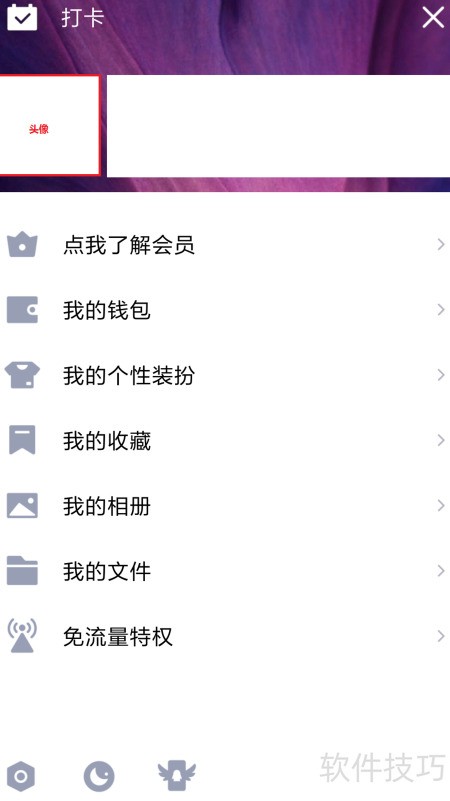 2、 点击左上角头像进入