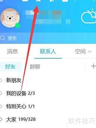 13、 进入电脑QQ主界面,点击顶部空间图标。