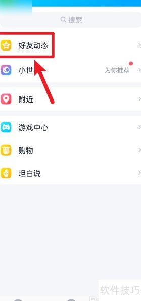 1、 打开手机QQ,进入动态页面,点击好友动态即可查看。