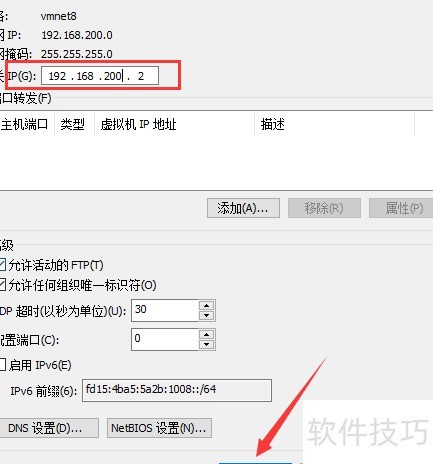 6、 设置NAT网络IP地址,若不熟悉可参照示例配置,确保参数一致即可完成。