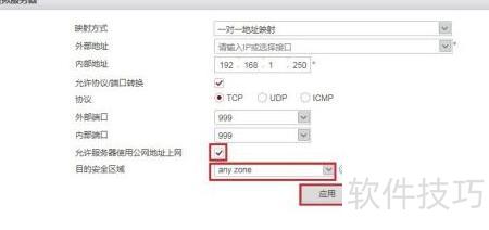 7、 勾选允许服务器通过公网访问,安全区域选任意区域,确认后点击应用即可。