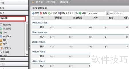 1、 登录防火墙Web界面,进入防火墙选项卡进行操作。
