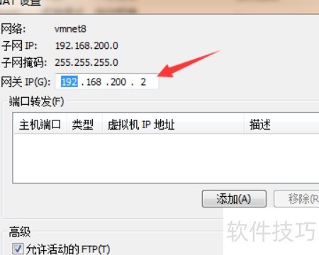 10、 在此处配置所需网关地址,本例采用默认值192.168.200.2。
