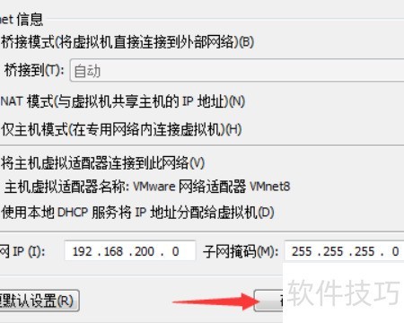 7、 默认使用VMware8的NAT模式网卡,需选择VMnet8。