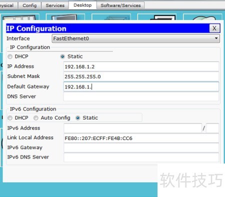 7、 设置路由器Router0的网络参数