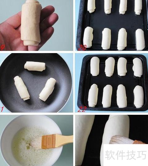 34、 将剩余小剂子同样处理后,依次摆入烤盘。
