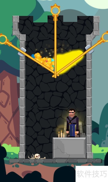 1、 本关目标为获取宝藏,熔岩位于宝藏右侧,中年男子处于熔岩下方,具体情形见示意图。