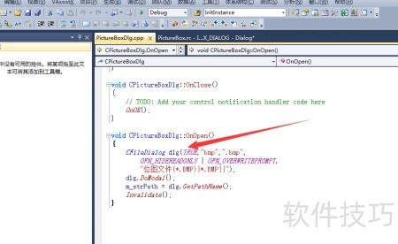 3、 对OnOpen()函数进行修改,加入指定代码以响应打开按钮操作。