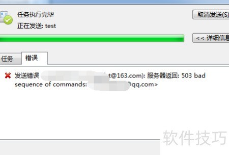 1、 发送邮件时,系统提示服务器503序列通信错误,表明邮件传输过程中出现服务异常或连接顺序问题。