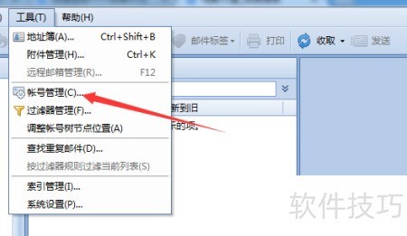 3、 在工具菜单的下拉选项中,选择账号管理功能。