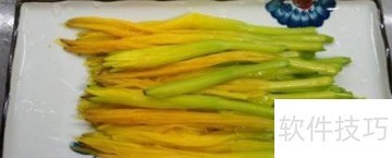 4、 第四道凉菜为凉拌金针菜,夏季可购得新鲜食材。将金针菜洗净后焯水,去除水仙碱,再加入适量麻油、盐和味精拌匀,即可享用清爽可口的凉菜。