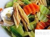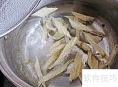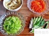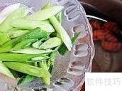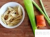 5、 将水发腐竹放入开水煮一分钟,捞出过凉水备用。