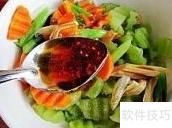 8、 将所有食材放入大碗,加入糖、盐、生抽、香醋、香油和辣椒油拌匀即可。