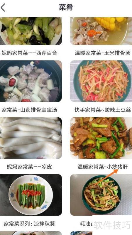 3、 打开菜谱列表,点击小炒猪肝即可查看详情。