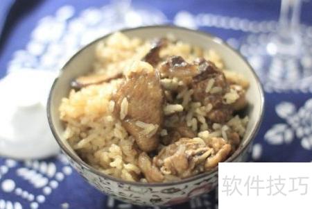 24、 当电饭煲内温度达到沸点,香菇香气飘出时,打开锅盖,将调好味的鸡肉放入其中。