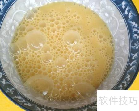 2、 将鸡蛋打入碗中,加少量料酒搅匀备用。