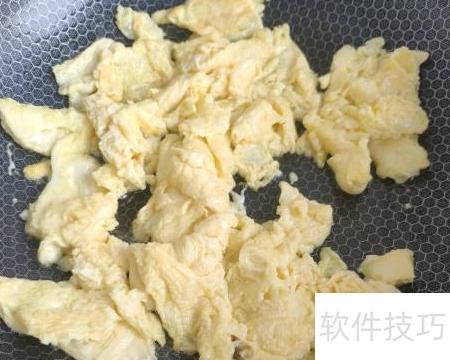 5、 热锅倒油,倒入蛋液炒至凝固后盛出。