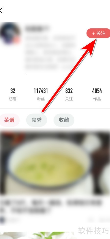 美食杰关注菜谱作者的方法如下,简单几步即可完成。