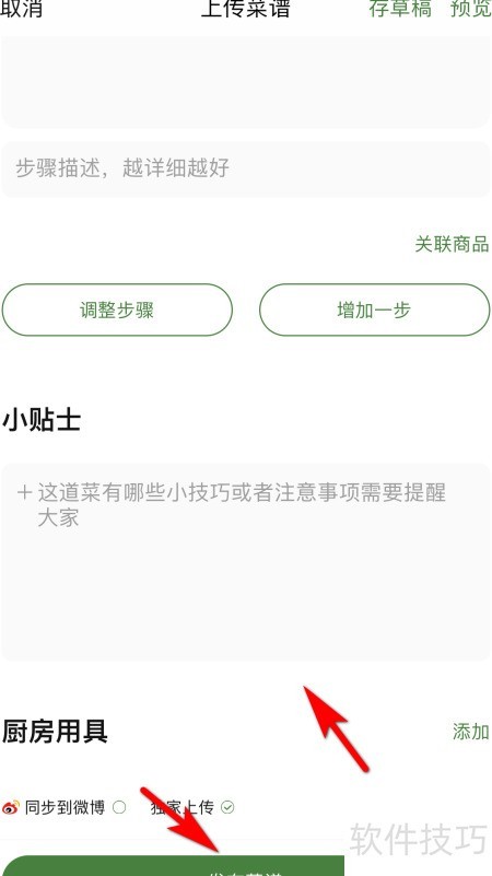5、 填写完菜谱基本信息,点击下方按钮即可发布。