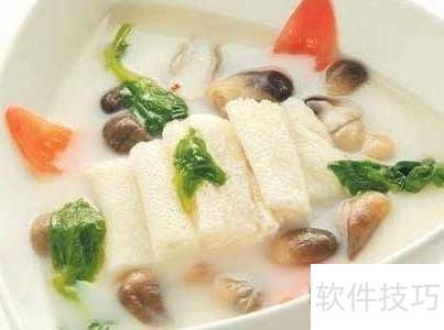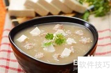17、 鲜风尾菇100克,豆腐200克,配以适量精盐、味精、葱花、香菜末、鲜汤和植物油。
